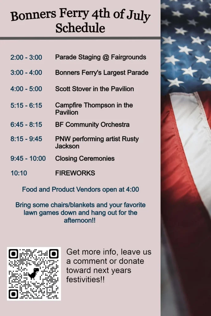 The fireworks display is a Fourth of July staple in America, and it’s no different here in far north Bonners Ferry, Idaho.John Becker, organizer and promoter of the Bonners Ferry’s Fourth of July celebration five years running and president of Forerunner Enterprises, says “Come!”