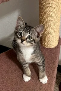 Hello! I’m Charlie and I’m a 3-month-old kitten. My friends and I are waiting for our spays/neuters on the 29th before we can be adopted, but we would love to meet you! If you would like to meet us just schedule an appointment with SCAA, we’ll be waiting for you.