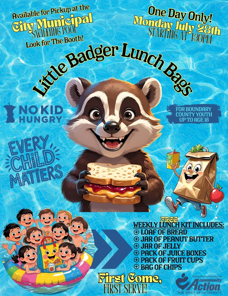 Little Badger Lunch Bags will be hosting an additional lunch bag give away at the Bonners Ferry Municipal Pool for one day only, Monday July 28 starting at 1:30 p.m.