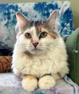 I am an adult calico of roughly three years. I am a lover and a cuddler. I will curl up with you on the couch and let you pet me as long as you can. I am shy at first but as soon as we get to know each other, I will follow you wherever you go. I would be a great addition to any family.