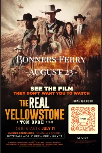This Saturday, August 23, 2025, the Historic Rex Theater located at 7222 Main Street in Bonners Ferry presents, “The Real Yellowstone”, a Tom Opre film and is free to the public with ticket.The show starts at 7 p.m. and doors will open at 6 p.m. Run time is 87 minutes.