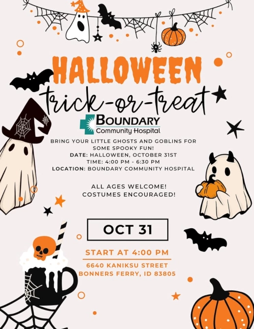 Trick or Treat at BCH, 4 to 6:30 p.m. Friday, October 31, Boundary Community Hospital, 6640 Kaniksu Street, Bonners Ferry.