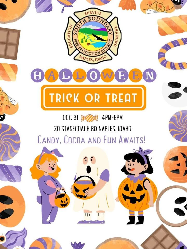 Trick or Treat on Friday, October 31 from 4 p.m. to 6 p.m. 20 Stagecoach Road in Naples, South Boundary Fire. Candy, cocoa and fun awaits.